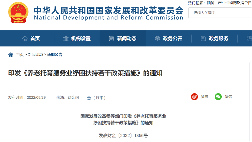 8月29日,国家发改委官网发布“国家发改委等部门印发《养老托育服务业纾困扶持若干政策措施》的通知”。出台包括房租减免、税费减免、社会保险支持、金融支持等26条政策措施纾困扶持养老托育服务业。