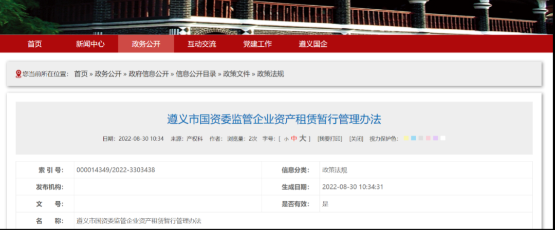 3、遵义市国资委印发《遵义市国资委监管企业资产租赁暂行管理办法》