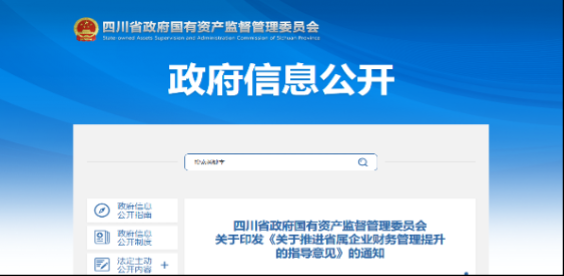 为深入贯彻党的二十大精神,推动财务管理适应新时代国资国企改革发展新形势,进一步提升企业财务管理能力水平,加快建设现代化财务管理体系,更加有效支撑省属监管企业高质量发展,依据《四川省“十四五”省属国有资本和国有企业发展规划》、《关于中央企业加快建设世界一流财务管理体系的指导意见》等文件精神,四川省国资委印发了《关于推进省属企业财务管理提升的指导意见》。