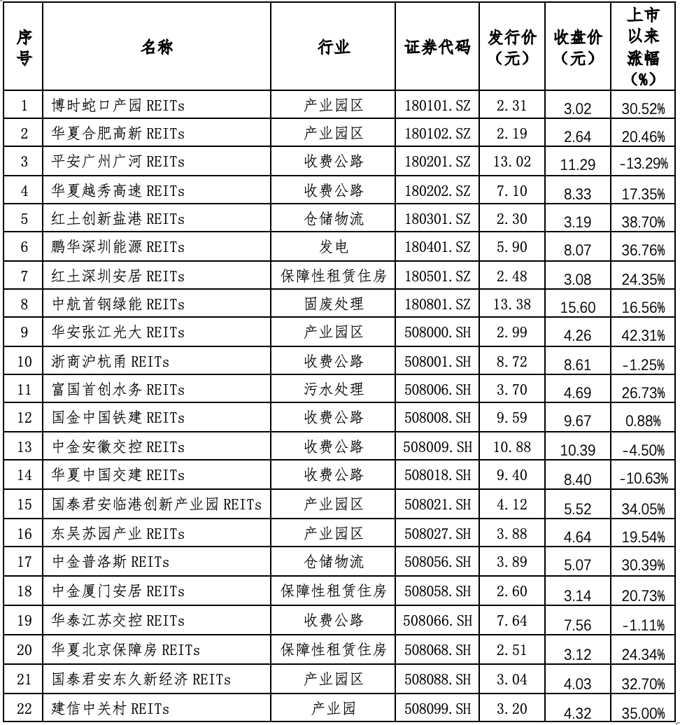 2、22只公募REITs市场表现(截止11月22日)