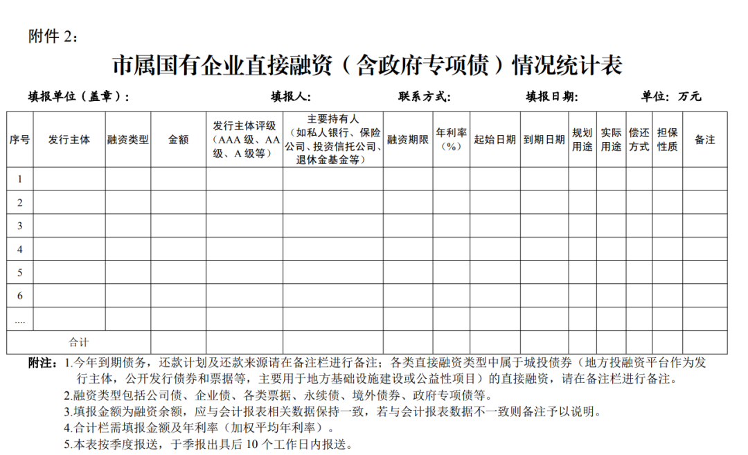 2.市属国有企业直接融资(含政府专项债)情况统计表