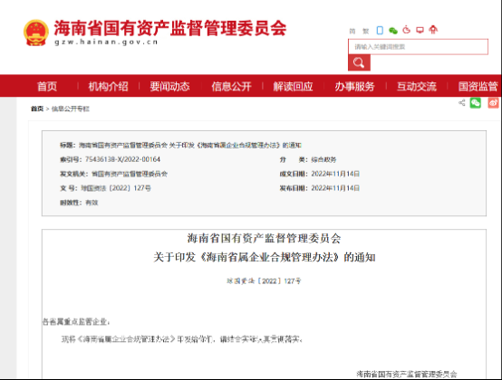 1、《海南省属企业合规管理办法》