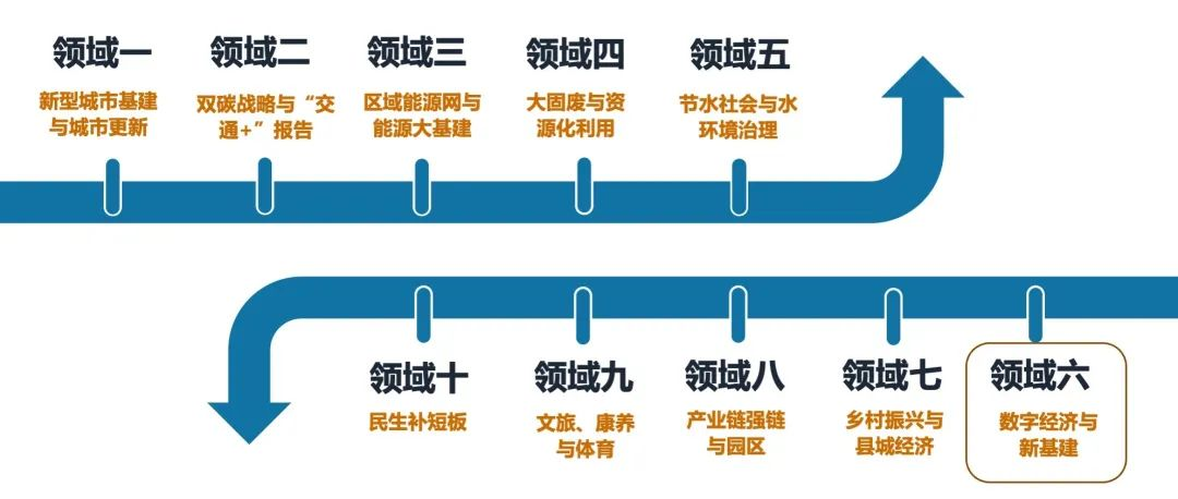 根据《规划》,到2025年,“产业数字化转型迈上新台阶”“数字产业化水平显著提升”“数字经济治理体系更加完善”,而这正与新基建的三个层次板块相对应,一是融合基础设施,对应的是产业数字化,主要通过“智能+”赋能农林牧渔业、生产制造、交通、能源等领域,本轮建设的特点在于强调“网络化、智能化、服务化、协同化”;二是信息基础设施,对应的是数字产业化,本轮建设已由过去的单点突破向统筹部署转变,重点在于打造算力、算法、数据、应用资源协同的全国一体化大数据中心体系,如目前重点推进实施的“东数西算”工程、一体化算力网络国家枢纽节点的建设等。三是场景应用,主要涉及智慧政务、智慧监管、智慧决策与智慧大脑等数字经济治理方面。