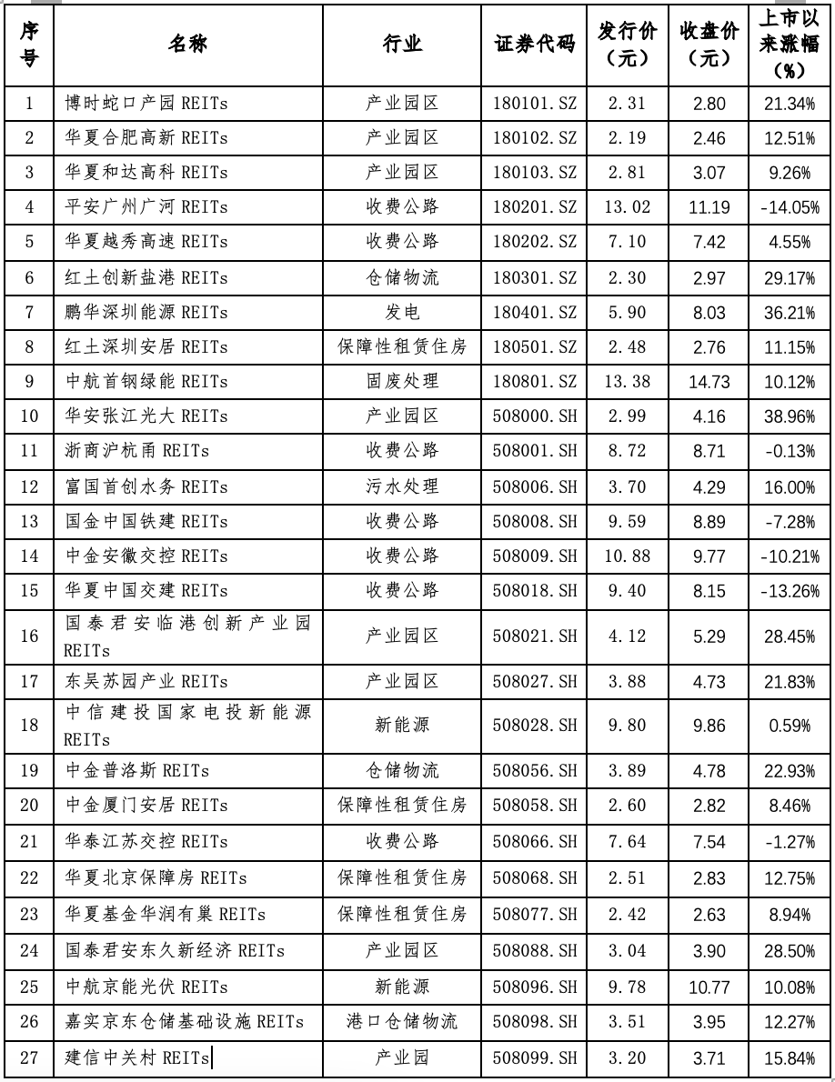 2、27只公募REITs市场表现(截止4月12日)