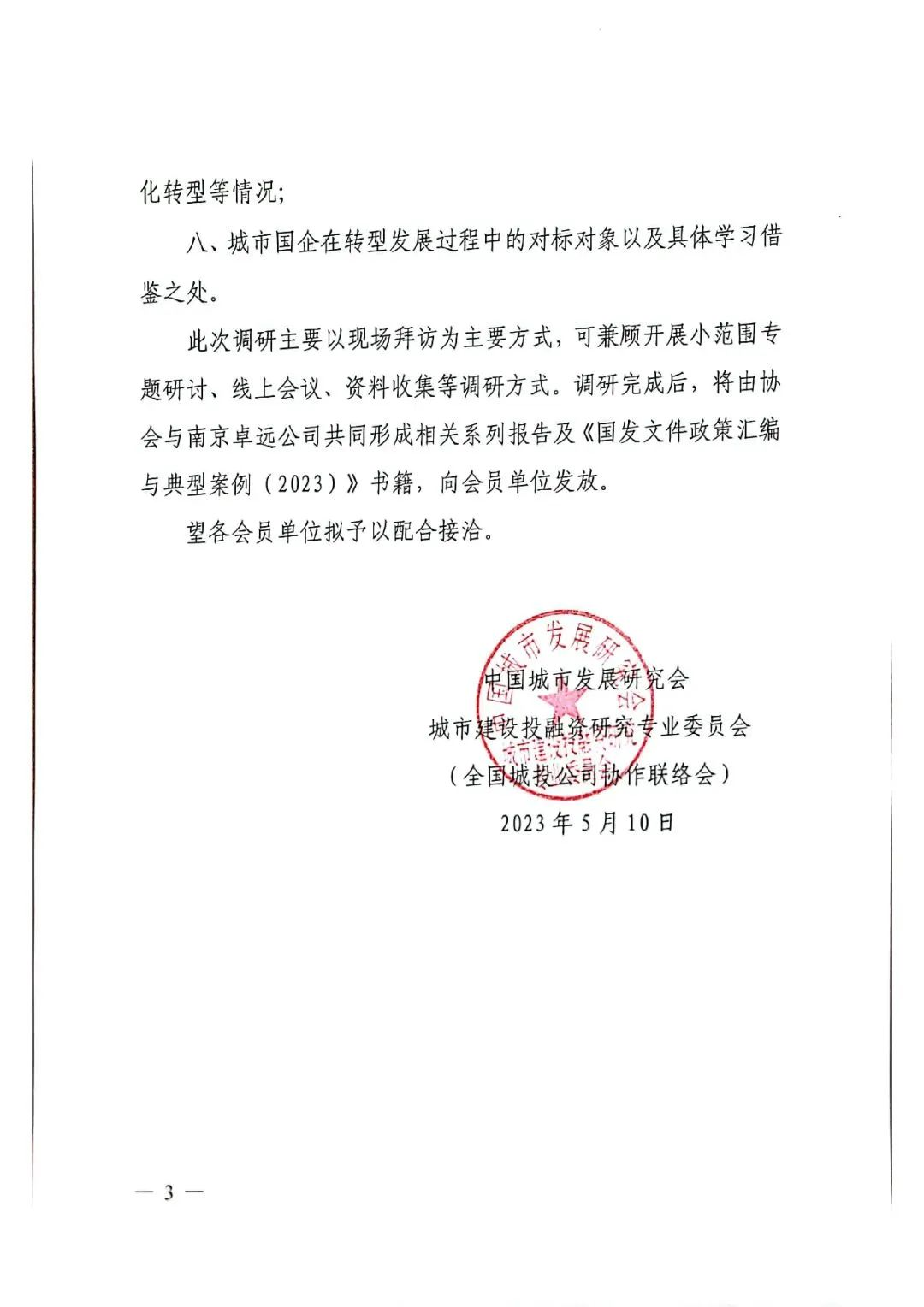 2023年,南京卓远秉持“调研出真知”的初心,继续受中国城市发展研究会城市建设投融资建设专业委员会暨全国城投公司协作联络会(以下简称“全国城投协会”)的委托,于6~7月面向全国城投企业进行线上线下调研活动,最终将形成详实案例、政策汇编,为城市的赋能和破题、为国有企业的发展与创新提供参考与借鉴。