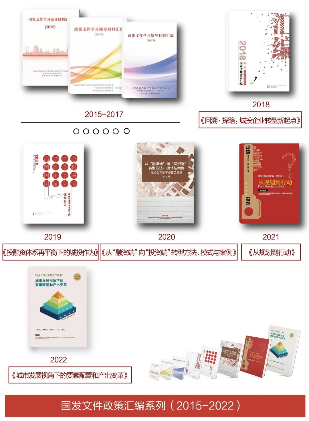 2015年,国发43号《关于加强地方政府性债务管理的意见》、国发45号《关于深化预算管理制度改革的决定》等文件陆续出台,影响着各地城投公司的的发展,变革和转型一直在进行,成效却不一。全国城协会本着为广大会员单位提供优质服务的理念,提出编制《国发文件学习辅导材料汇编(2015年)》的想法,并委托一直兢兢业业服务于城投公司的南京卓远开展编制工作。书籍内容主要围绕新型城镇化、国有企业改革、经济和投融资体制改革等核心主题展开。书籍发布后,在业界引起不错的反响,一度成为城投公司的“政策宝典”、“行业工具书”。