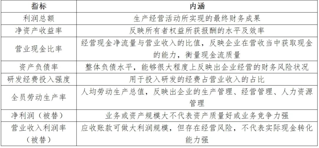 而从考核目标来看,新的央企考核目标更加强调要引导被评价央企提高真实的经营水平,做到稳健、高质量地发展,逐步提高市场竞争力;同时在经营行为上灵活决策,积极把握优质投资机会,进一步实现国有资产的保值增值。具体分析如下: