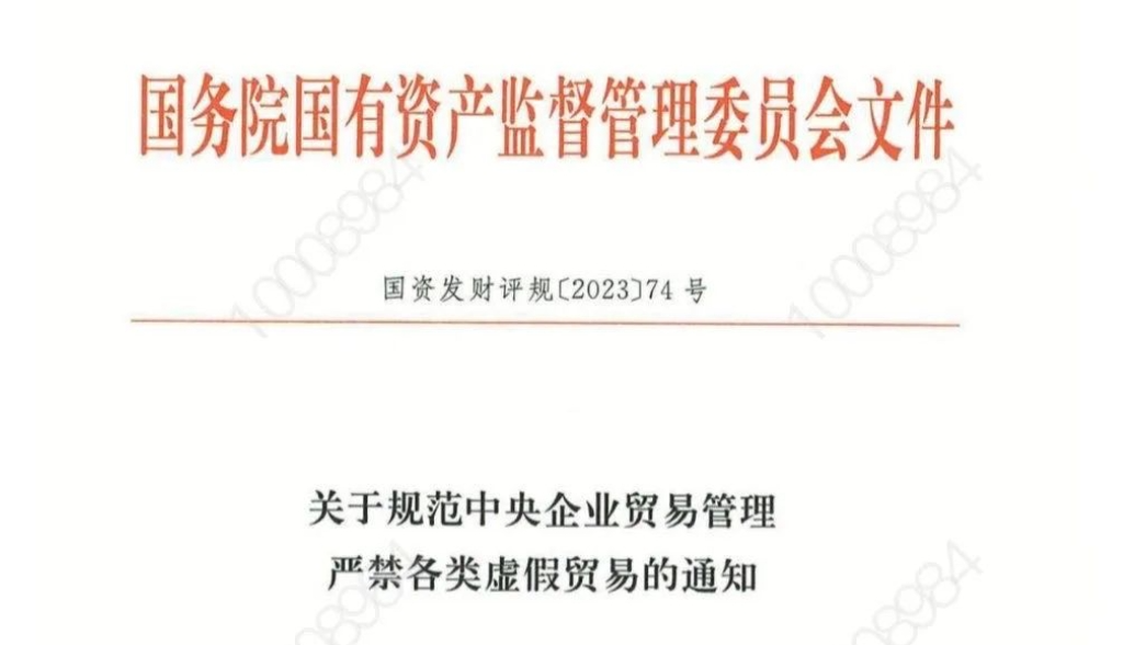 2023年10月,国务院国资委发布《关于规范中央企业贸易管理严禁各类虚假贸易的通知》(国资发财评规[2023]74号),提出虚假贸易背离商业实质,干扰正常的经济秩序和金融市场,并指出部分企业在虚假贸易的处理上存在的系列问题,规范了中央企业虚假贸易“十不准”,强调“各中央企业要落实全面从严治党要求,切实提高政治站位,坚决根治虚假贸易业务各类问题。”