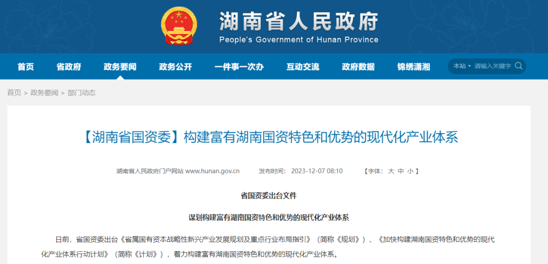 2、湖南省国资委出台文件!谋划构建富有湖南国资特色和优势的现代化产业体系