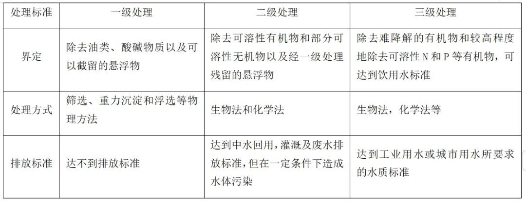 表1 污水处理分类