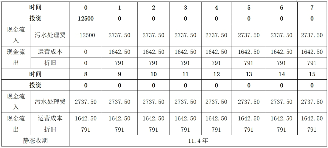 表2 污水处理模拟项目经营性现金流