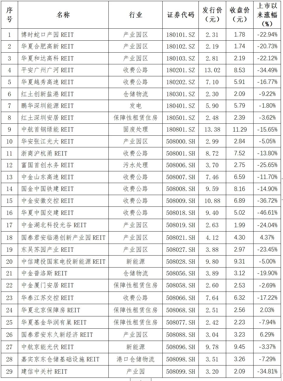 2、29只公募REITs市场表现(截止11月23日)