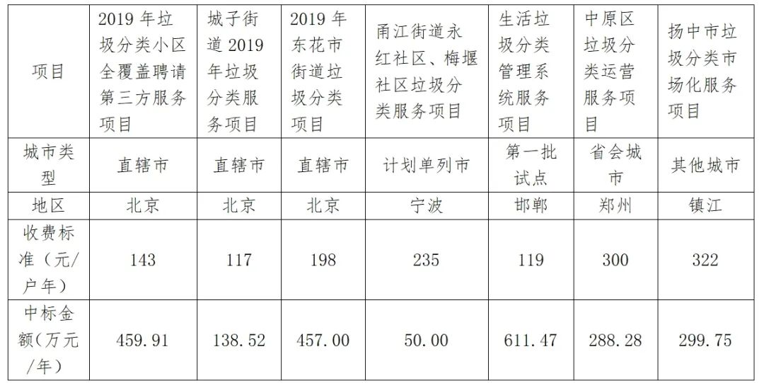 盈利模式:收入来源主要包括,(1)垃圾分类服务费,大致包括:垃圾分类运行管理服务、垃圾分类达标指导服务、分类咨询服务、二次分拣服务、二次转运服务、垃圾分类收集服务、垃圾分类一体化服务(分类垃圾收运、保洁、推广等);(2)垃圾分类实施效果测评服务,监管垃圾分类有效性需要一定的专业性,目前试点城市普遍采用的是将垃圾分类实施效果测评、巡检与考核等服务外包给第三方的专业机构执行。(3)基础设施建设,主要是中转站、压缩站、服务点及回收网点等基础设施建设运营养护费用;(4)垃圾清运运输费。垃圾分类投放收集,势必将带动垃圾分类运输,垃圾收集转运行业需求增长,垃圾清运费收入将稳定增长。