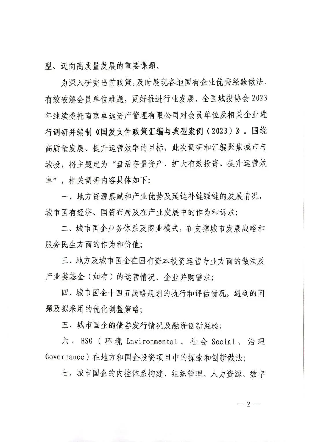 附:全国城投协会关于委托南京卓远开展调研并编制2023年政策汇编的通知