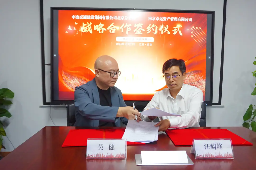 金秋十月,硕果飘香。近期,中冶交通建设集团有限公司北京分公司(以下简称:中冶交建集团北京公司)与南京卓远资产管理有限公司(以下简称:南京卓远)战略合作签约仪式在南京成功举办。中冶交建集团北京公司总经理汪崎峰、副总经理白伟、总经理助理武建新,南京卓远总经理吴健、上海公司总经理徐亨玺、总经理助理黄飞翔出席仪式并座谈交流。