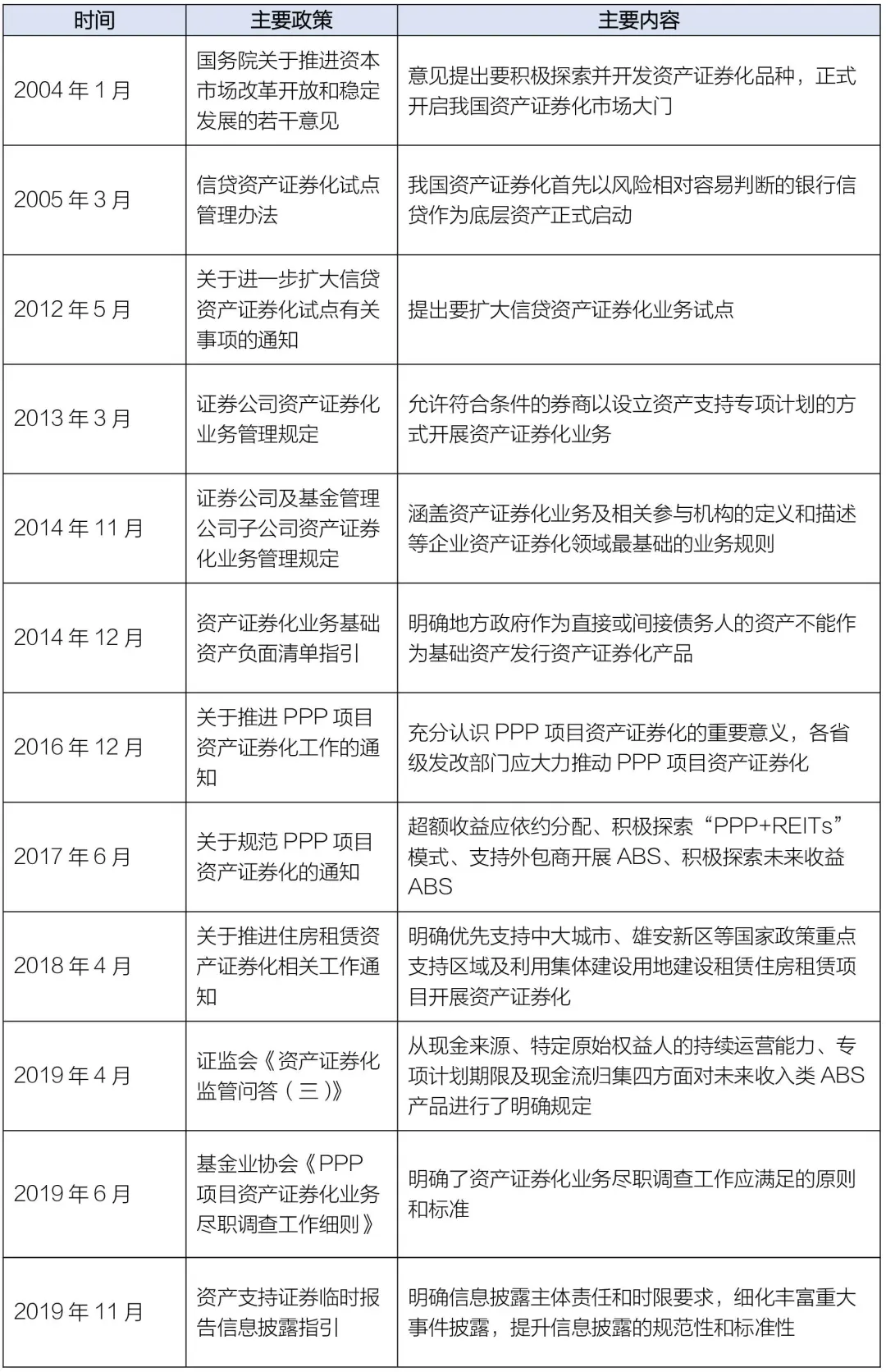 表1:我国资产证券化重要政策梳理
