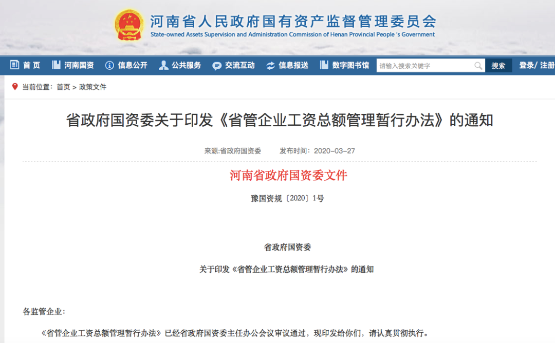 2、河南省政府国资委关于印发《省管企业工资总额管理暂行办法》的通知