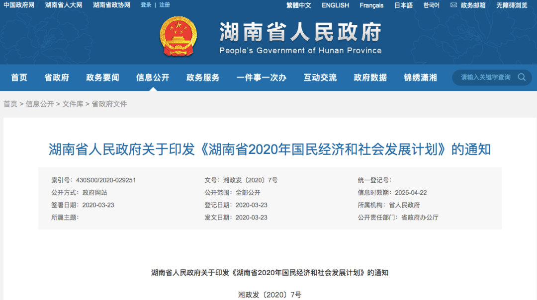 3、湖南省人民政府关于印发《湖南省2020年国民经济和社会发展计划》的通知 |