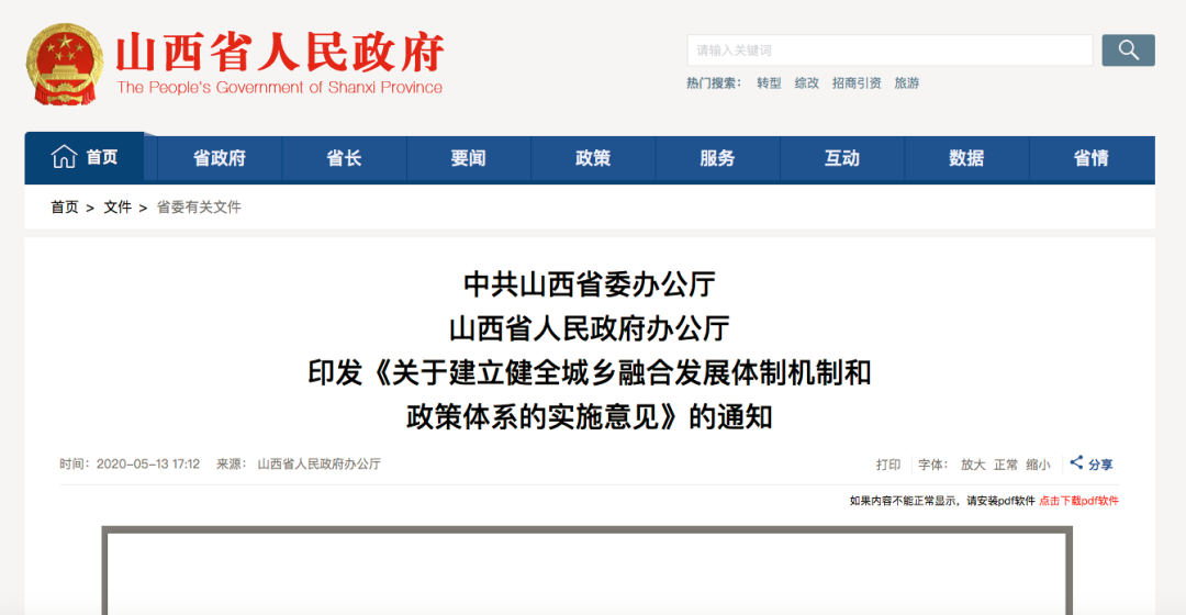 2、山西省委办公厅、省人民政府办公厅印发《关于建立健全城乡融合发展体制机制和政策体系的实施意见》的通知