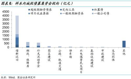 整体上,样本内城投债的募集资金去向中,最主要的一项即为借新还旧。用于借新还旧的城投债主要由中期票据、公司债、短期融资券和私募债构成,除此之外,大部分样本内企业债所募集的资金则被投向了棚户区改造、园区建设等工程建设项目。各类工程建设项目中,政策推进力度较大的主要包括棚户区改造、园区建设、公路及轨道交通和停车场等。
