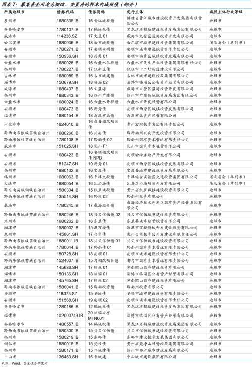 我们从2020年5月14日 的存量城投债(Wind口径)中筛选了2019年的地区生产总值(GDP)和一般公共预算收入负增长的地级市内的城投发债主体和相关债券。