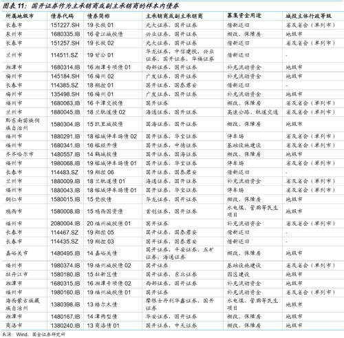 与此同时,在棚改等国家政策给予重点支持的募投项目中,国开证券作为相应城投债的主承销商或副主承销商,可能在一定程度上反映了国开行对项目的支持。因此,我们也将国开证券作为主承销商或副主承销商的债券明细于文内列出。