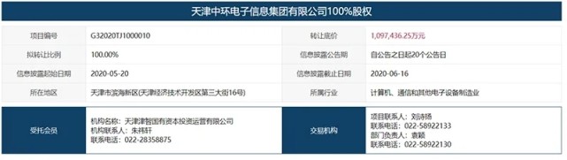 根据天津产权交易中心披露,天津国资拟直接转让中环集团100%股权,转让底价约110亿元。财务数据显示,中环集团2020年一季度实现营业收入46.86亿元,净利润3.33亿元。