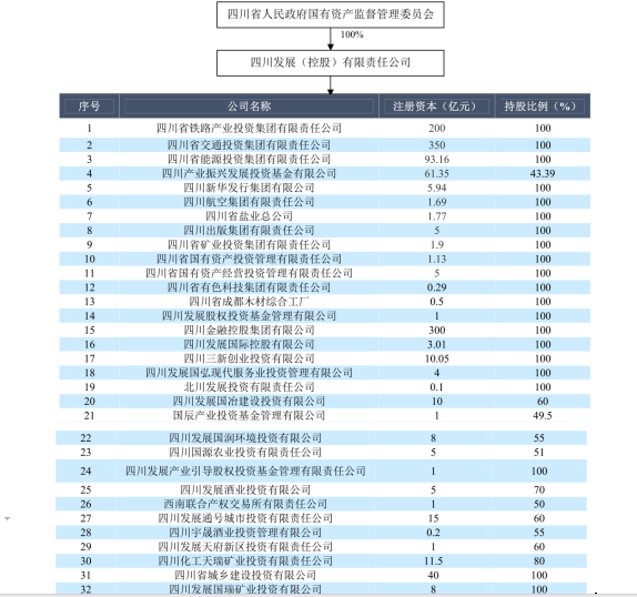 川发展注册资本800亿元人民币,公司作为一个纯粹的投融资平台,持有22家大型国有企业的股权。