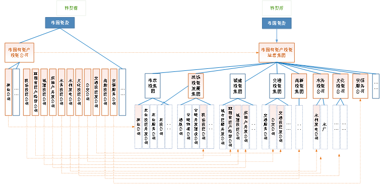 以上述地市级平台公司的转型为例,国投集团下属又成立新的子集团,子集团再成立公司。部分公司(例如机场投资公司)原来只需要向国资委汇报,如今与国资委之间增添了两个集团的汇报与决策层级。