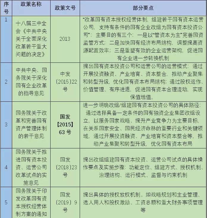 表1-1 国资改革相关政策要点梳理