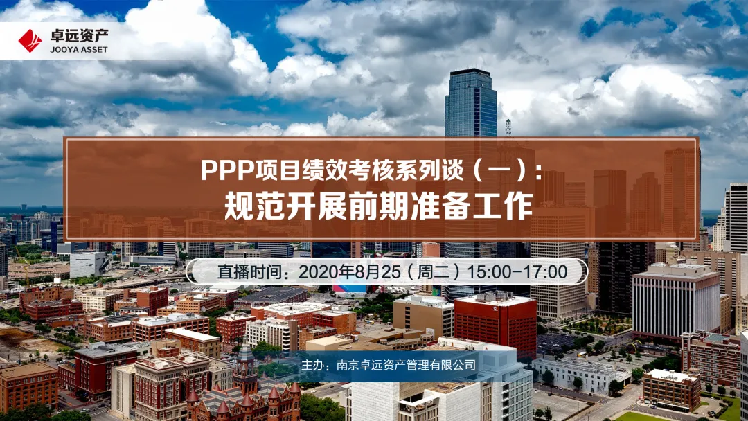南京卓远第十一期直播,主题为《PPP项目绩效考核系列谈(一):规范开展前期准备工作》。具体内容包括:PPP项目绩效管理政策规范要点、如何开展PPP项目绩效管理准备工作、如何构建符合13号文要求的指标体系等方面内容。欢迎广大城投企业、政府及职能部门参与直播间并展开互动,专家将进行答疑解惑。