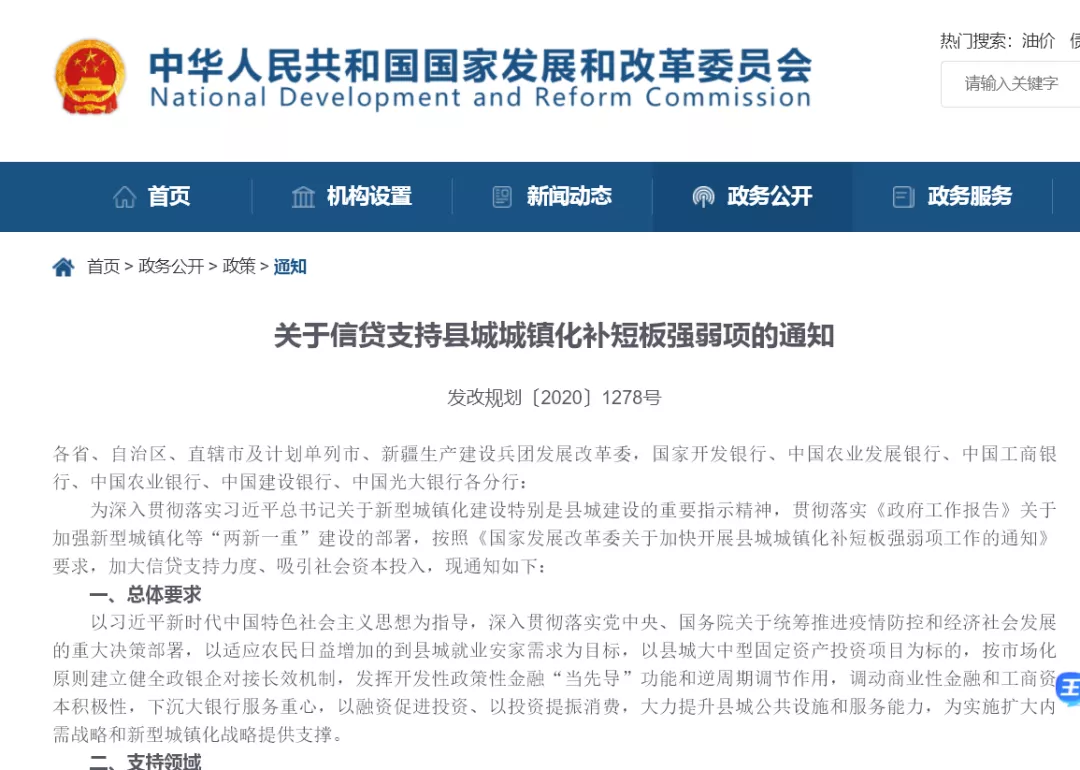 2、国家发改委与六家银行《关于信贷支持县城城镇化补短板强弱项的通知》