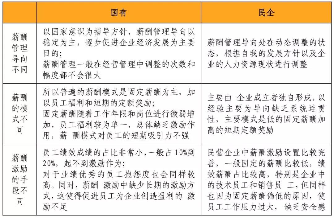 资料来源:袁媛《浅谈民营企业与国有企业薪酬管理的差异性管理》