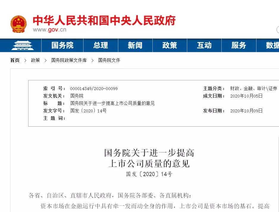 1、《国务院关于进一步提高上市公司质量的意见》 |