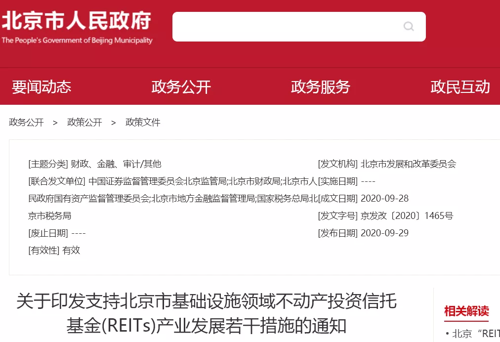 4、北京市发展和改革委员会关于印发支持北京市基础设施领域不动产投资信托基金(REITs)产业发展若干措施的通知