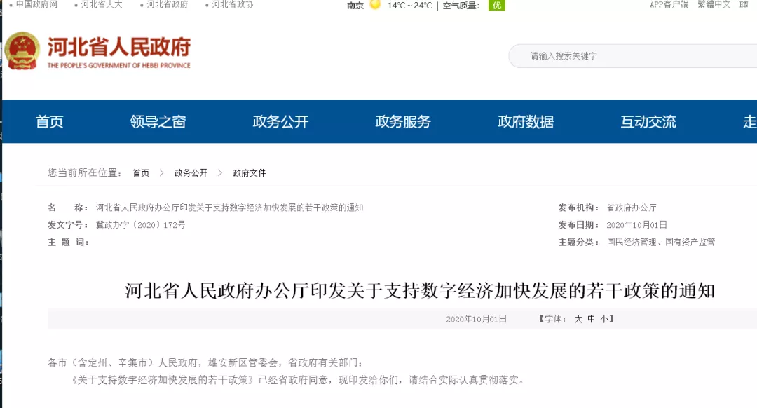 6、河北省人民政府办公厅印发关于支持数字经济加快发展的若干政策的通知