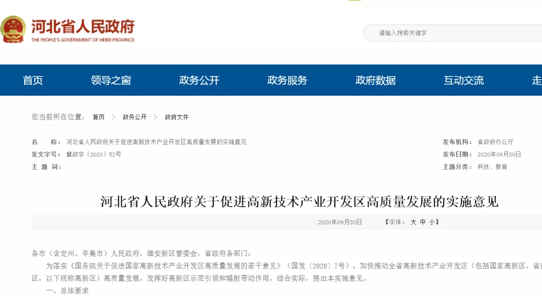 5、河北省人民政府关于促进高新技术产业开发区高质量发展的实施意见