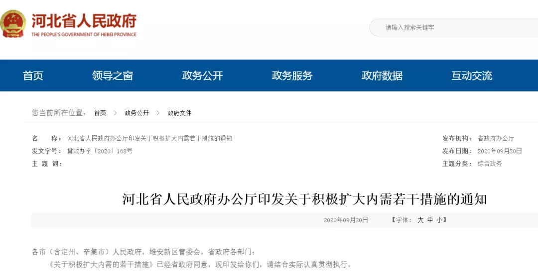 7、河北省人民政府办公厅印发关于积极扩大内需若干措施的通知