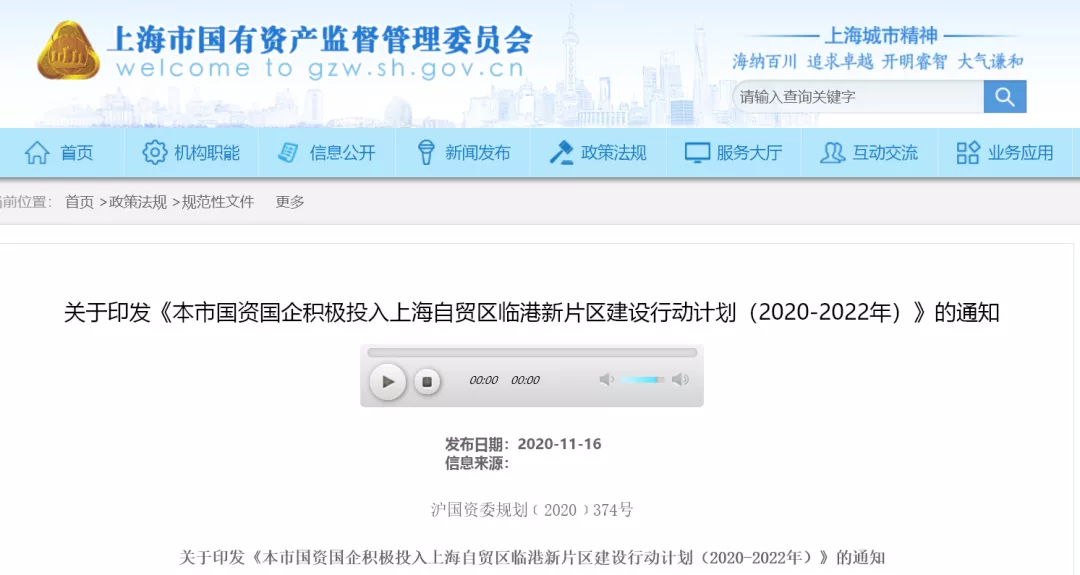 2、关于印发《本市国资国企积极投入上海自贸区临港新片区建设行动计划(2020-2022年)》的通知