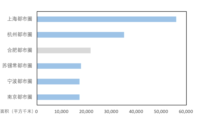 在面积上,上海都市圈有着绝对优势,杭州与合肥都市圈分别位于第二、第三位,苏锡常都市圈、宁波都市圈和南京都市圈在面积上比较接近。