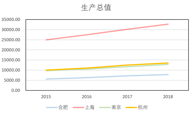 图5 合肥、上海、南京、杭州的生产总值对比