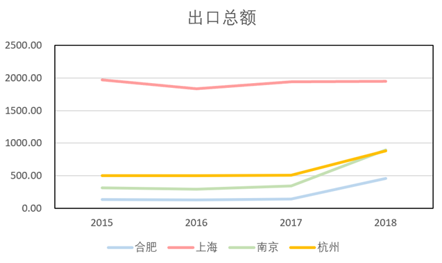 图6 合肥、上海、南京、杭州的出口总额对比