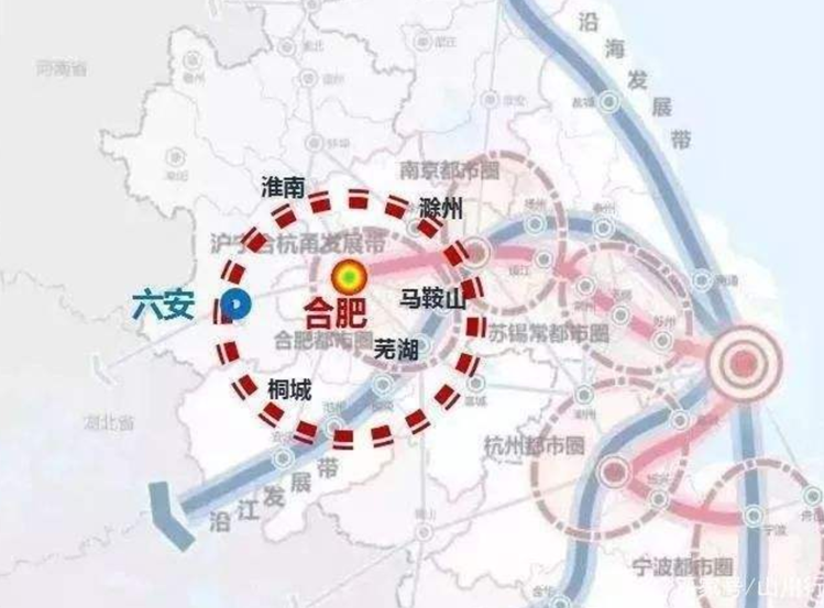 为了缩小与长三角其他中心城市经济指标值的差距,安徽省采取了“中心区率先突破,全省域一体推进”的战略,着力打造合肥都市圈——以合肥市为中心,向四周辐射至马鞍山市、芜湖市、淮南市、六安市、滁州市和桐城市等6个地级市。在2020年1月,安徽省发改委出台了《安徽省实施长江三角洲区域一体化发展规划纲要行动计划》,提出要高质量推进“一圈五区”建设,将中心区拓展到8个地级市,范围涵盖全省16市。而商合杭高铁开通则给合肥都市圈带来了更多的向北和向南扩张的机会,更加有利于中东部城市间的协调联动。