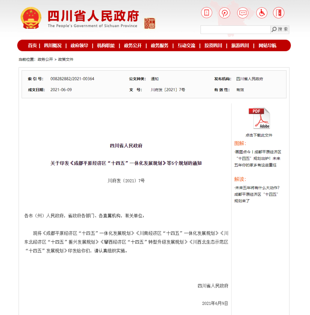 2、四川省人民政府关于印发《成都平原经济区“十四五”一体化发展规划》等5个规划的通知