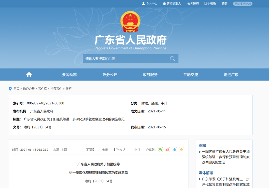 3、广东省人民政府关于加强统筹进一步深化预算管理制度改革的实施意见