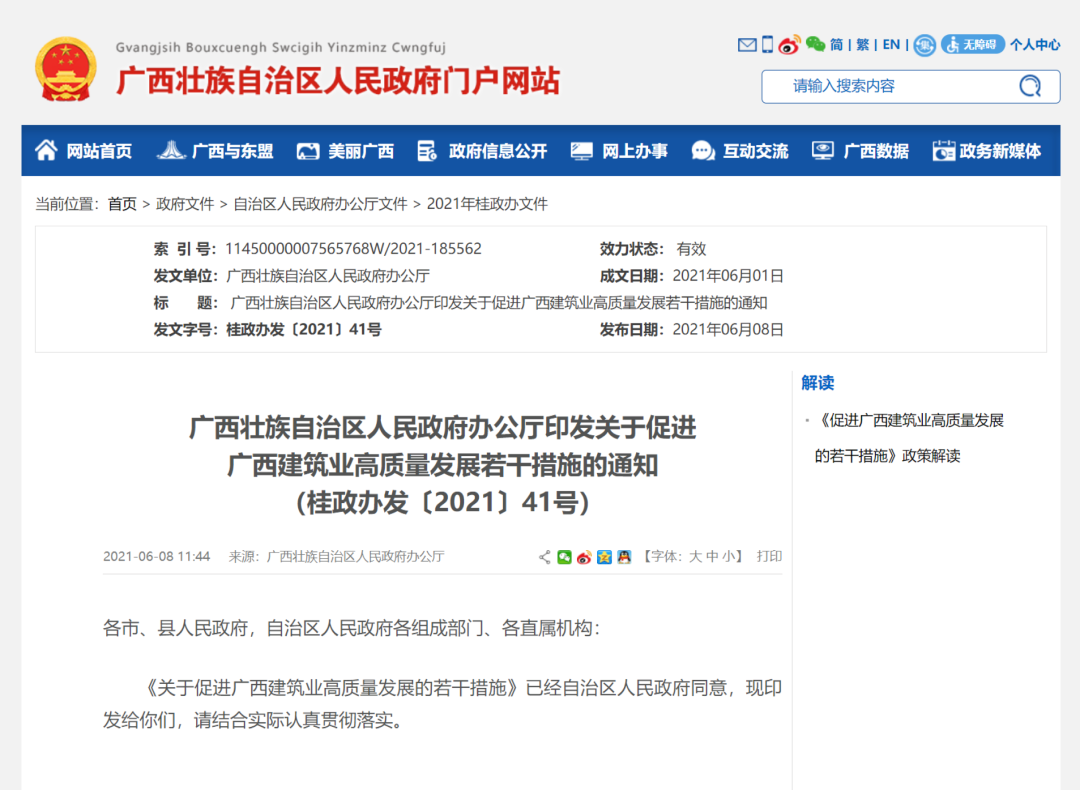 5、广西壮族自治区人民政府办公厅印发关于促进广西建筑业高质量发展若干措施的通知