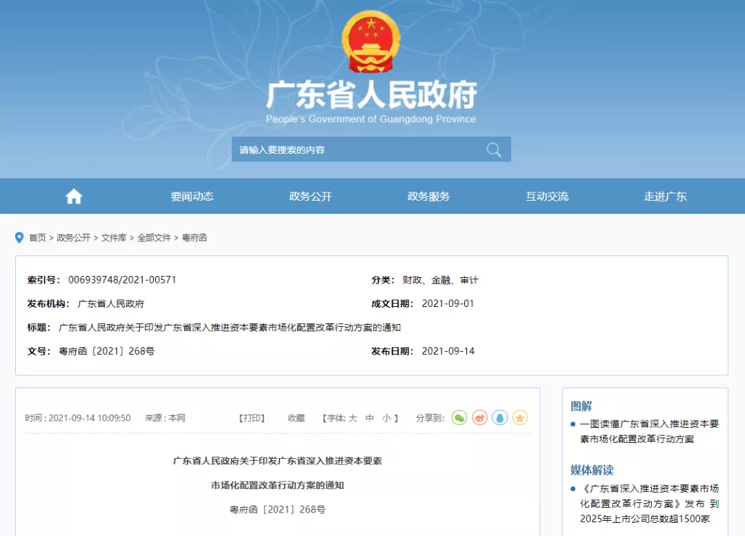 3、广东省人民政府关于印发广东省深入推进资本要素市场化配置改革行动方案的通知
