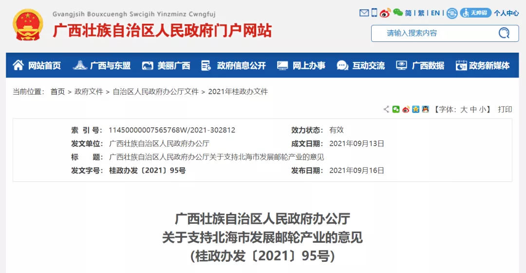 4、广西壮族自治区人民政府办公厅关于支持北海市发展邮轮产业的意见