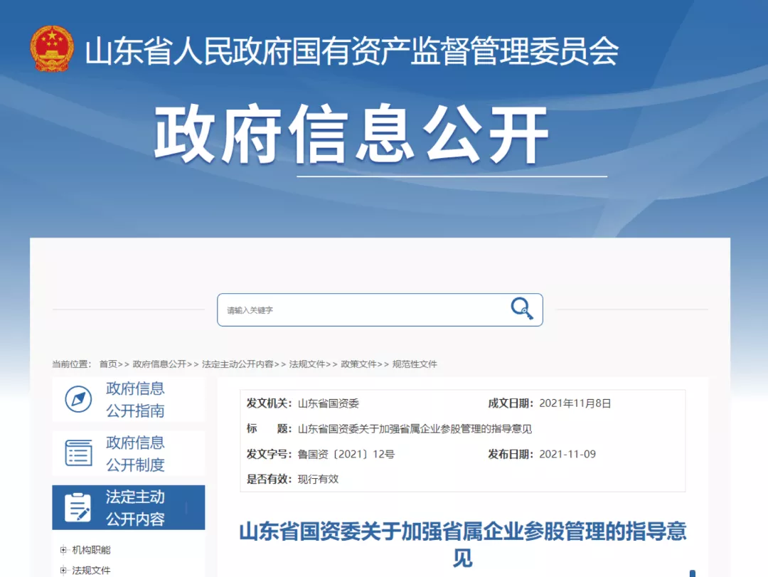 1、《山东省国资委关于加强省属企业参股管理的指导意见》 |