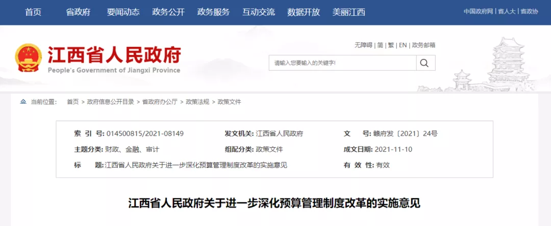 3、《江西省人民政府关于进一步深化预算管理制度改革的实施意见》